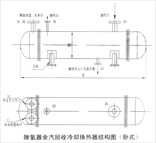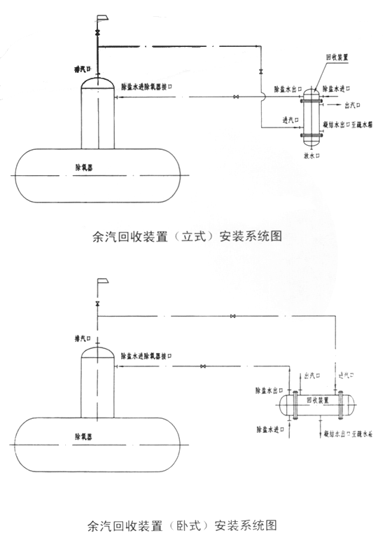 除氧器除鹽水(軟化水)以及排汽進入回收裝置,該裝置是采用表面式加熱器,是通過金屬受熱面將加熱蒸汽的熱量傳給管束內被加熱的水,使除熱水水溫升高,達到余汽回收利用的作用。